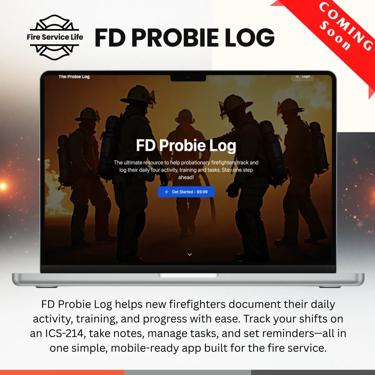rack your daily training, calls, and progress with the Probie Activity Log—a $9.99 web and mobile cross-platform app built for new firefighters. Coming soon, it’s your digital ICS-214, helping you stay organized, focused, and ready to master your first year in the fire service.