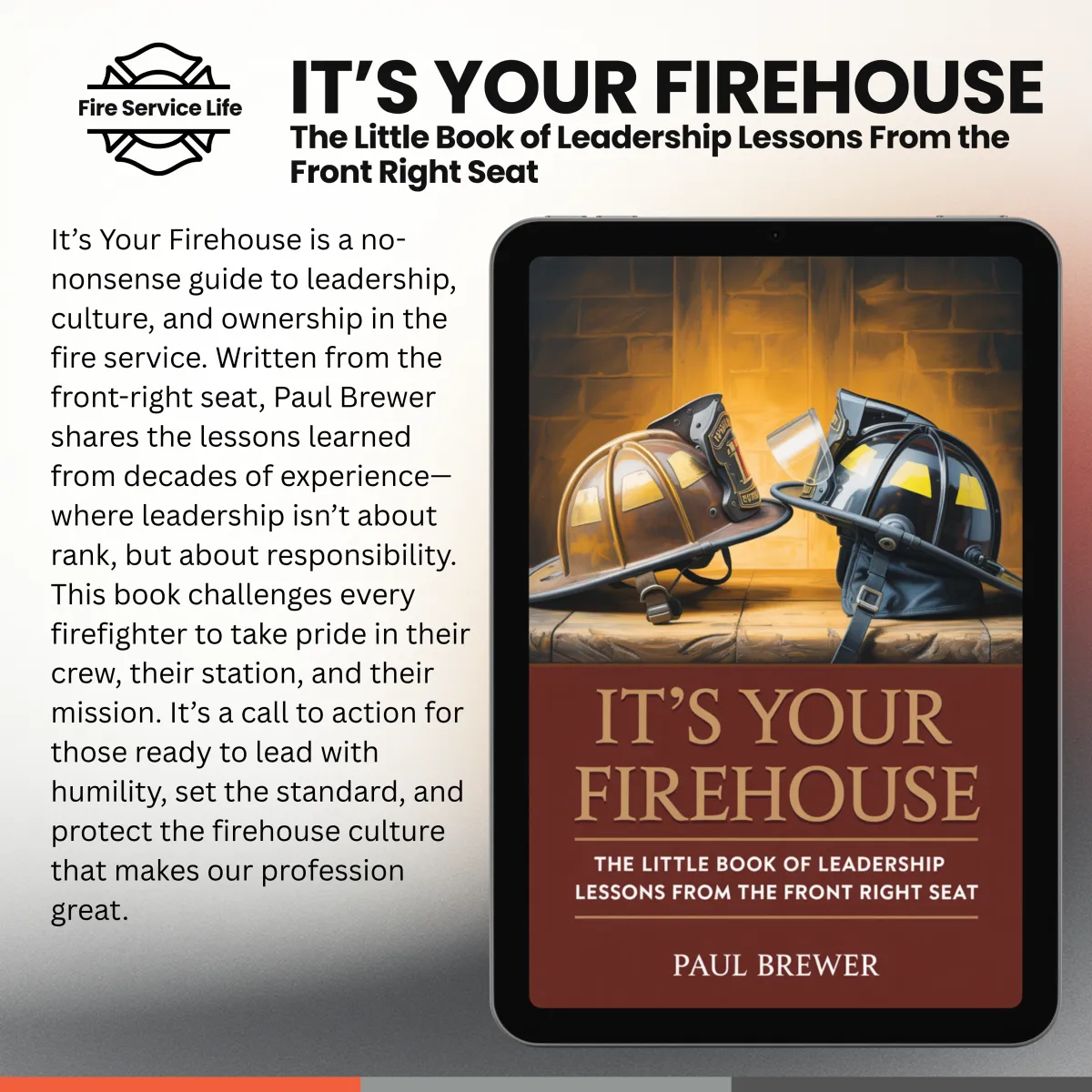 Lead with purpose and pride with It’s Your Firehouse—available in Kindle or PDF for $6.95. Written for firefighters and company officers alike, it’s a powerful guide to building culture, earning trust, and taking ownership of the crew, the station, and the mission.